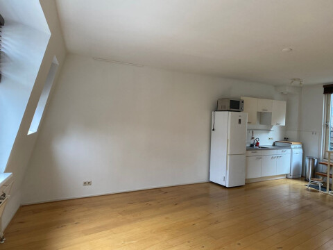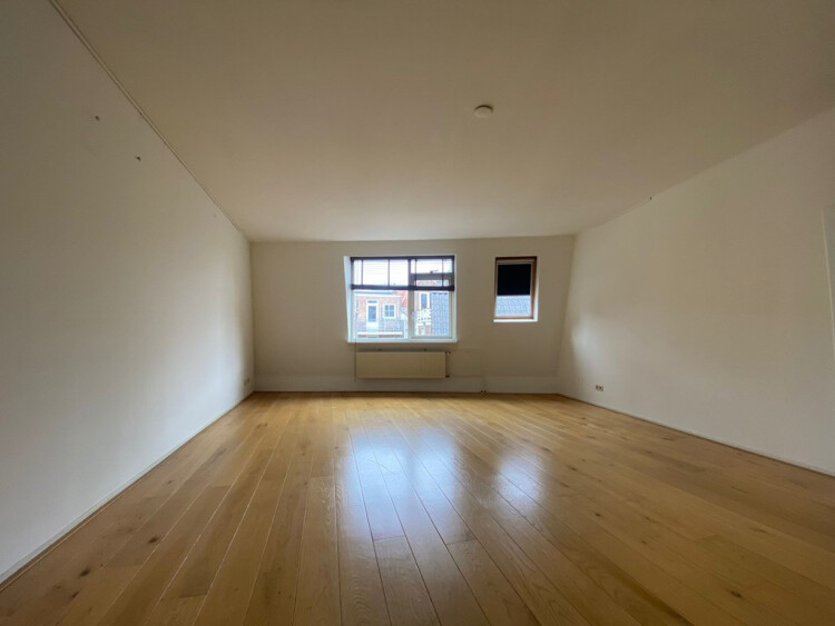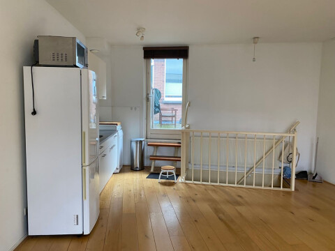Grote, lichte woonkamer met open keuken (34m2), eiken parketvloer, dakkapel en toegang tot een zonnig dakterras (ca.10m2). Grote zelfstandige (inpandige) berging ten behoeve van meerdere fietsen etc. op de bgg.