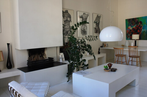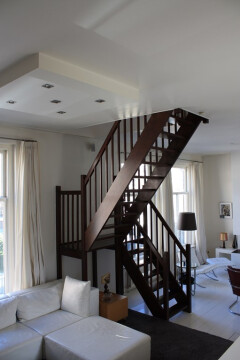 Indeling; entree begane grond, vaste trap naar 1e etage. Alle muren zijn op de 1e etage weggehaald, waardoor er een zeer ruime woonkamer is ontstaan. De woonkamer geeft mogelijkheid om een zithoek, eethoek en evt. een tweede zithoek te creëren voor de open haard. De haard is aan drie kanten open, waardoor je optimaal van het mooie vuur kunt genieten. De keuken is apart en voorzien van alle gemakken. Separaat toilet.