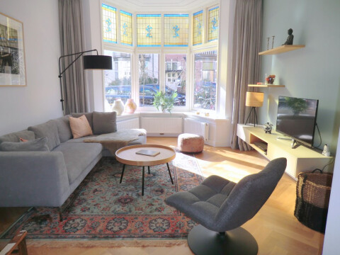 Recent, op zeer hoog niveau gerenoveerde (gestoffeerde) gezinswoning met 4 dubbele slaapkamers plus een studeerkamer en ruime waskamer/inloopkast, 2 luxe badkamers en een aparte woonkamer met uitgebouwde woonkeuken. Het huis is met zorg en liefde gemoderniseerd, met behoud van veel charmante details uit de bouwperiode. De woning ligt midden in de geliefde Bosch en Vaartkwartier; in een rustige, kindvriendelijke straat en vlak bij het centrum van Haarlem, goede scholen, openbaar vervoer en uitvalswegen. In de zonnig achtertuin is een ingebouwde trampoline en twee terrassen. Vanuit de nabij gelegen Tempeliersstraat vertrekken verschillende (snel)buslijnen richting Amsterdam (in het spitsuur om de 4 minuten). Ook NS-station Haarlem, met directe verbindingen richting Amsterdam, Den Haag en Rotterdam is snel bereikbaar.