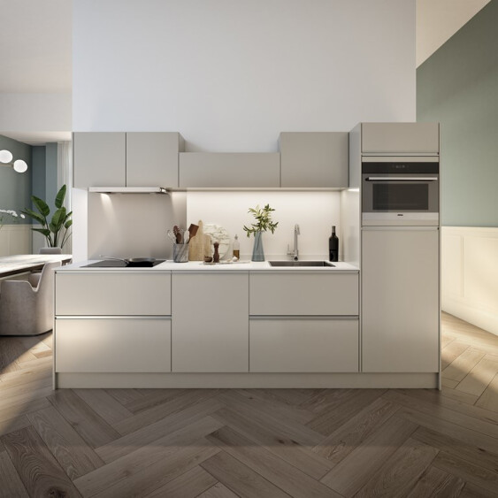Complete keuken (vaatwasser, koelkast met vriesvak, inductie kookplaat, combi-oven) en badkamer (uit 2021);