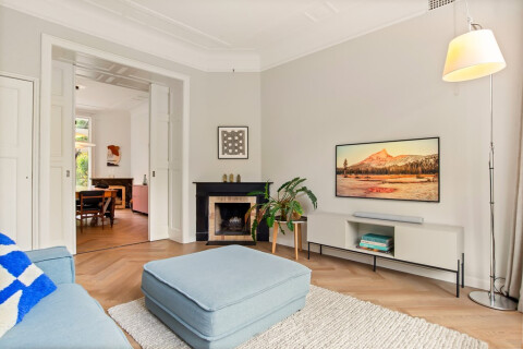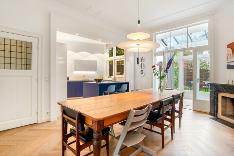 This stunning, fully furnished, 245m2 townhouse in a very sought after location in Haarlem South is available for a TEMPORARY PERIOD of 8 months (January-August 2025). 5 (of the 6) bedrooms are offered to let with 2 bathrooms, a front garden with space for several bicycles and a south-facing terraced backyard with rear access. The house has been fully modernised for optimal comfort and luxury (underfloor heating throughout the entire house, modern kitchen and bathrooms, 14 solar panels for example). While retaining many of the original details (tile paneling, stained glass, ensuite doors). The neighbourhood 'Haarlemmerhout' offers quiet streets, lots of greenery, close to good schools (including 2 locations of the International School Haarlem). An entrance to the beautiful city forest 'De Haarlemmerhout' is on this street, and a short walk brings you to the bustling centre of Haarlem with its shops and restaurants. It is close to the bus terminal where (fast) buses depart to various locations in Amsterdam and Schiphol. The property is also within cycling distance of the train stations Haarlem and Heemstede-Aerdenhout and within 30 mins (cycle) to the beach at Zandvoort.