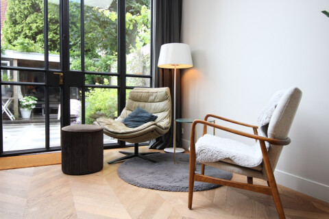 The child-friendly, enclosed sunny (south-facing) back garden also offers some shaded areas due to the mature shrubs. The house is located in the highly sought-after Kleverpark neighborhood, with many shops and various schools (including international schools) within walking and/or cycling distance. Haarlem Central Station is a 10-minute walk and from there you can reach the center of Amsterdam in 15 minutes (30 minutes by car). You can reach Bloemendaal aan Zee in 20 minutes by bike. There is plenty of room to park in front of the door, with a parking permit for 1 car (no waiting list). Visitors can also easily park via a visitor app.