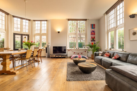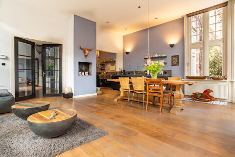 Schitterend monumentaal herenhuis met torenkamer, tuin en privé parkeerplaats in het centrum van Haarlem! Deze prachtige woning met 6 slaapkamers en 3 badkamers is onderdeel van een historisch pand waarin vroeger het Haarlemse weeshuis was gevestigd. In 2000 is het gebouw volledig gerenoveerd en omgebouwd tot een aantal zeer fraaie woningen, in het hart van de geliefde Koninginnebuurt. Stadsbos ‘De Haarlemmerhout’ ligt op loopafstand, net als meerdere goede (basis) scholen (o.a. de International School Haarlem). De Koninginnebuurt bestaat uit rustige, brede straten en pleinen; een hele kindvriendelijke buurt op slechts enkele minuten lopen van het bruisende stadscentrum. De belangrijkste uitvalswegen richting Amsterdam en Schiphol(Rijk) zijn snel bereikbaar. Het nabijgelegen busstation Tempeliersstraat biedt snelle verbindingen naar verschillende locaties in Amsterdam (iedere 4 minuten in de spits). Het NS station, met rechtstreekse verbinding naar Den Haag en Rotterdam, ligt op minder dan 10 minuten fietsen van de woning. Ook de mooie stranden bij Zandvoort en Bloemendaal zijn per fiets (25 minuten) goed bereikbaar.