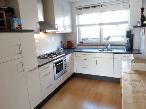 Deze moderne eengezinswoning met 3 slaapkamers, tuin en parkeerplaats kijkt uit over de rivier het Spaarne en de Bavokerk in het centrum van Haarlem en is toch gelegen in een rustige, bijna buitenwijk. De woning biedt een terrasvormige tuin en toegang tot het gemeenschappelijke terrein, ideaal voor kinderen om te spelen. De parkeerplaats in de ondergrondse garage biedt de mogelijkheid om een elektrisch laadstation te plaatsen en naast de goede isolatie van het pand heeft het ook een aantal zonnepanelen. De woning wordt gestoffeerd opgeleverd (gordijnen en verlichting) evenals de volledige keuken en badkamer. Sommige meubels kunnen in de woning blijven staan als dit de wens is van de nieuwe huurder.