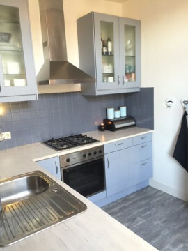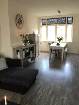 Zeer lichte en uitstekend onderhouden 2-kamer bovenwoning met zonnig balkon te huur.