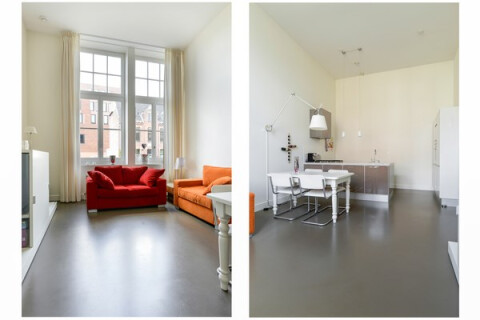 Stijlvol, modern, gestoffeerd (NIET gemeubileerd) appartement in het centrum van de stad. De woning heeft twee ruime, even grote slaapkamers, fraaie hoge plafonds en een eigen parkeerplek in de ondergrondse garage! Dit appartement ligt op de begane grond van een tot appartementen omgebouwde voormalige school in het hart van Haarlem. Het treinstation met directe verbindingen naar Amsterdam (Sloterdijk en Centraal), Schiphol, Den Haag en Rotterdam ligt op slechts enkele minuten lopen. De busverbinding naar Amsterdam Zuidas (elke 4 minuten in de spits) is vlak naast de deur. Er is een privé (fietsen)berging in de kelder.